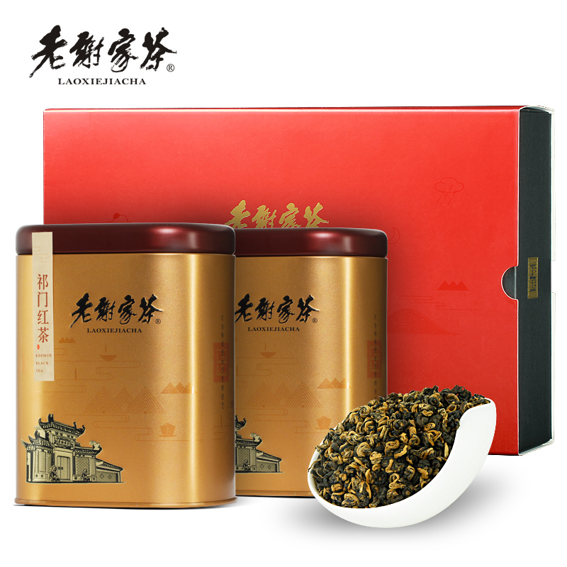 Old Xiejia tea Keemun black tea Qihongxiang snail 200g classic can gift box