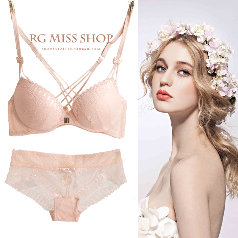 France DK Beauty Back Front Button Underwear Suit Black Lace Sexy Little Breast Underpants Women Gather Thin Bra