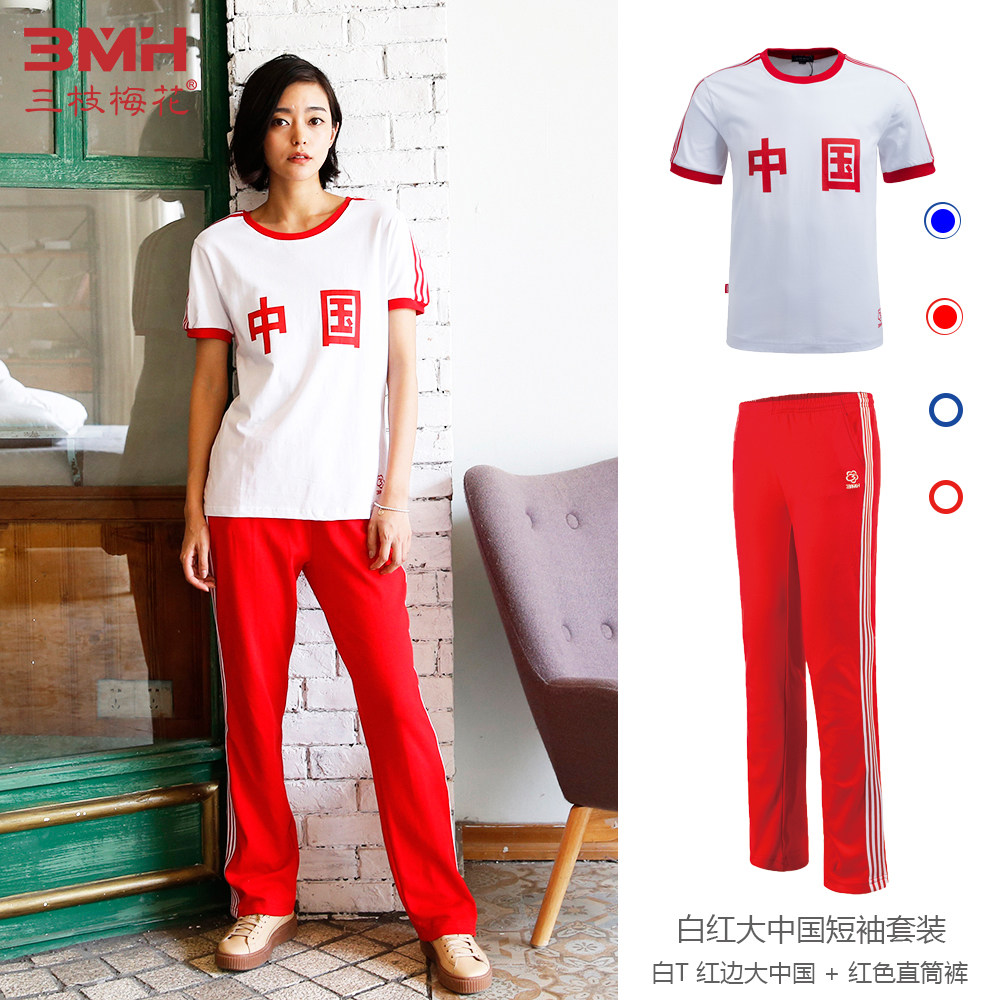 Three Branches Plum Blossom sports suit women 2022 Summer new Chinese short sleeves T-shirt Long pants casual running suit