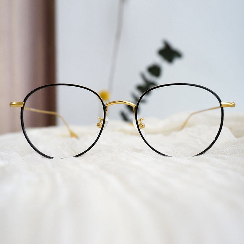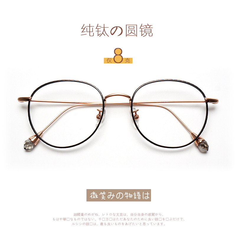 Ultra-light pure titanium eye mirror frame female Korean version of ins net red literary retro big face round can be equipped with myopia plain light