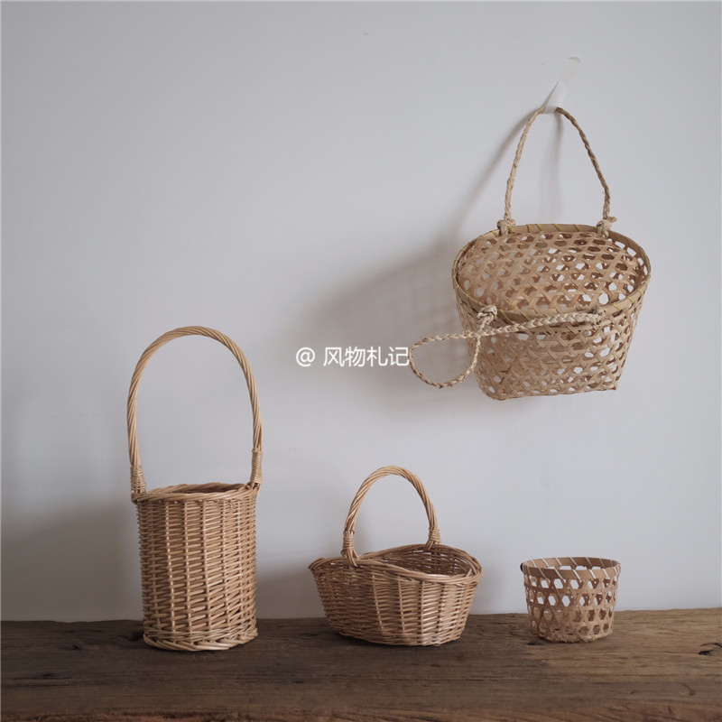 Willow woven pastoral forest literature and art unpainted portable storage basket bread fruit picnic basket wedding flower basket bucket bag