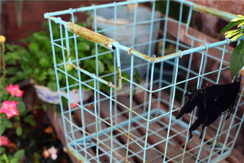 Meow Little Craftsman's Orphan Item-European and American Home Yard Retro Doing Old Iron Mesh Weaving Storage Basket Pastoral Style Storage Frame 04