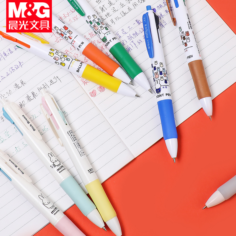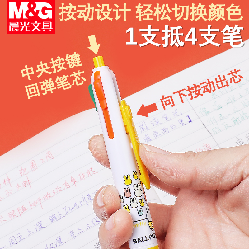 Morning light multi-color press ballpoint pen Press multi-color pen All-in-one unisex refill for notes Special female cute multi-function multi-color note taking four-color five-color red blue black three-color all-in-one oil pen