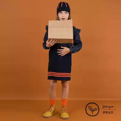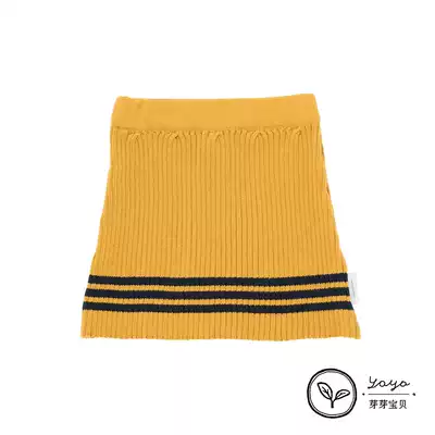 Navy blue striped knitted skirt yellow striped knitted skirt