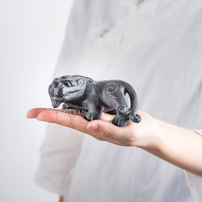 Stone hidden Pixiu sculpture handmade black gold stone color-changing tea pet ornaments boutique can raise lucky tea toy tea set