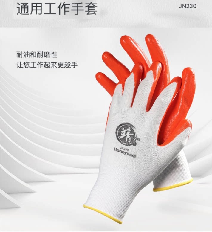 HoneywellJN230 YU138 Nitrile Gloves Wear Resistant Oil Resistant Acid Working Labor Industry Protective Dip