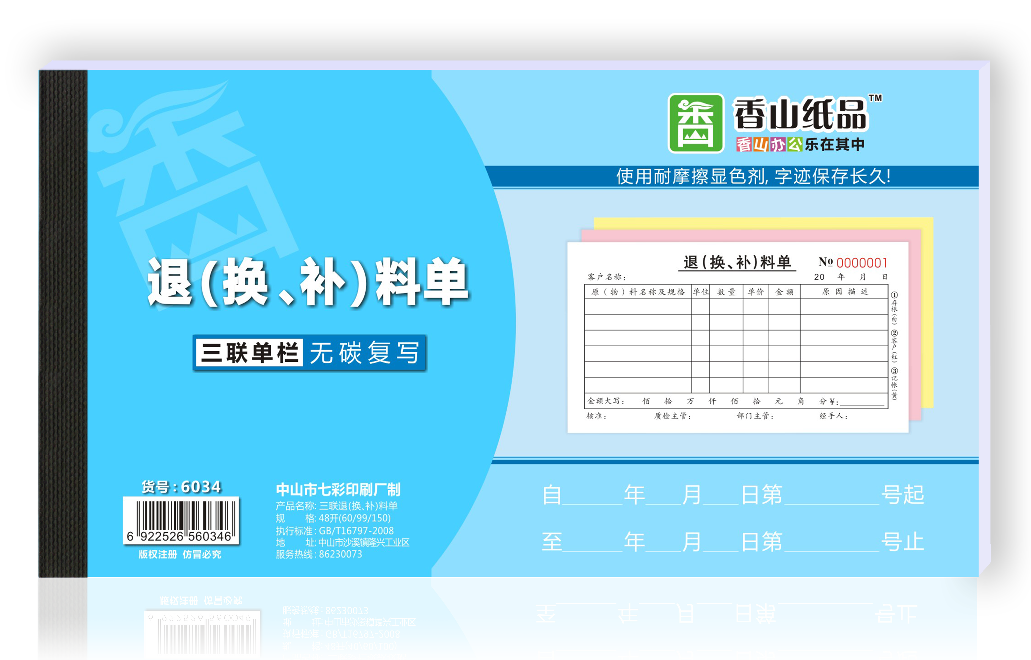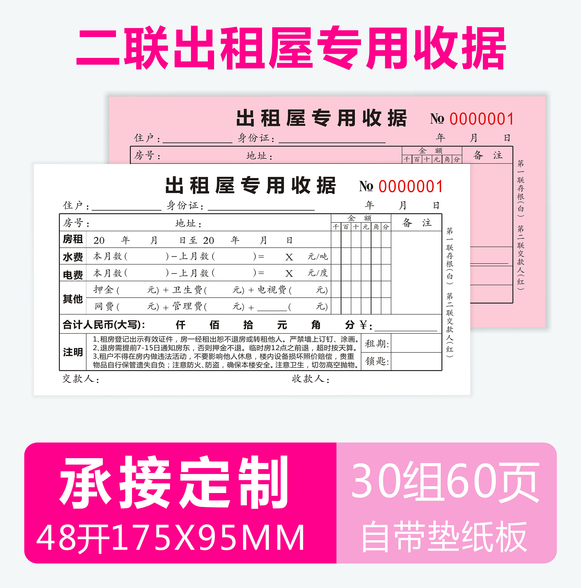 Rental housing receipt rental out of 2-linked triptych customised booking made of Shanshan paper Pine without carbon paper link