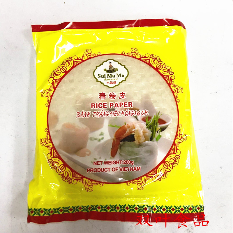 Water mom ultra-thin spring roll leather 200g Vietnamese spring roll leather transparent rice paper leather sushi thin pie leather 16cm about 40 sheets