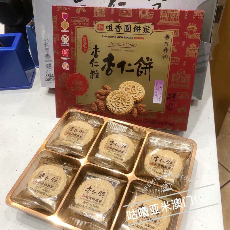 Full 2 pieces of Macau Fragrant Garden Charcoal Burning Almond Grain Almond Cake 450g Gift Box Snack letterhand letterback