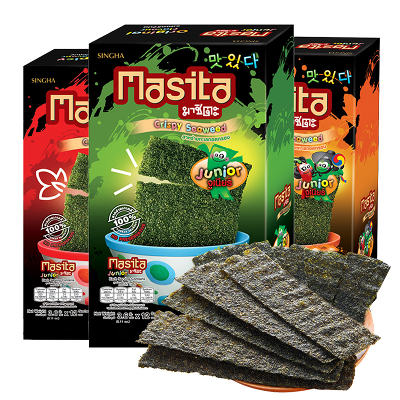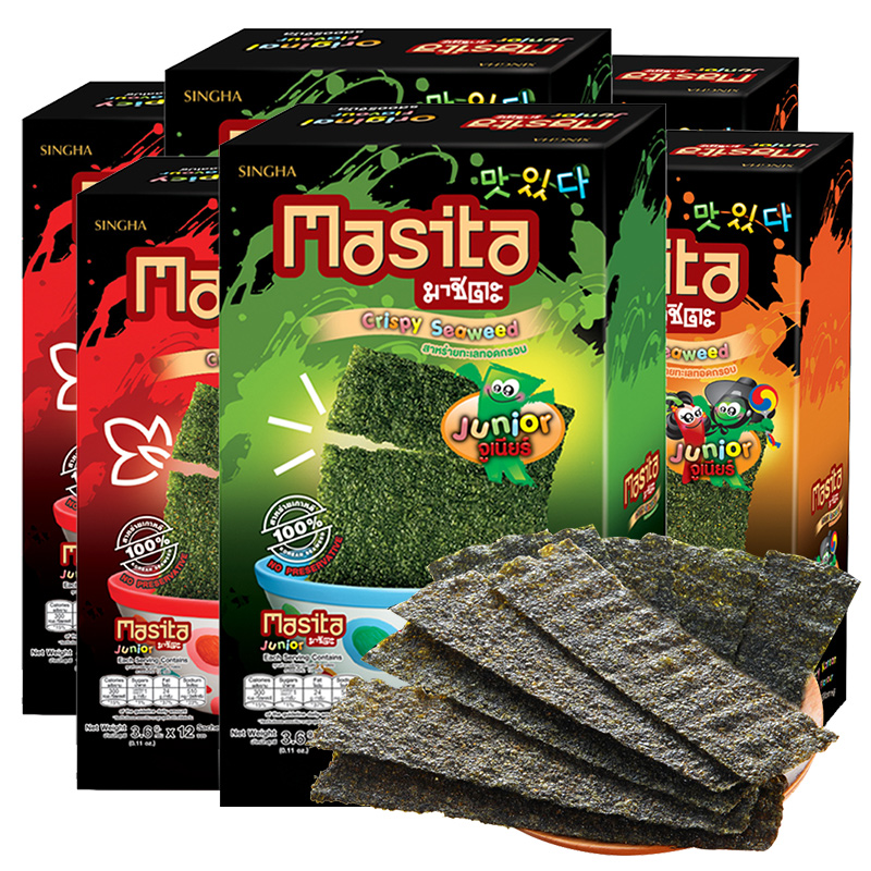 Thailand imported snacks Mahitai Korean-style crispy seaweed slices children's original seaweed ready-to-eat seaweed 3 6g*24 bags