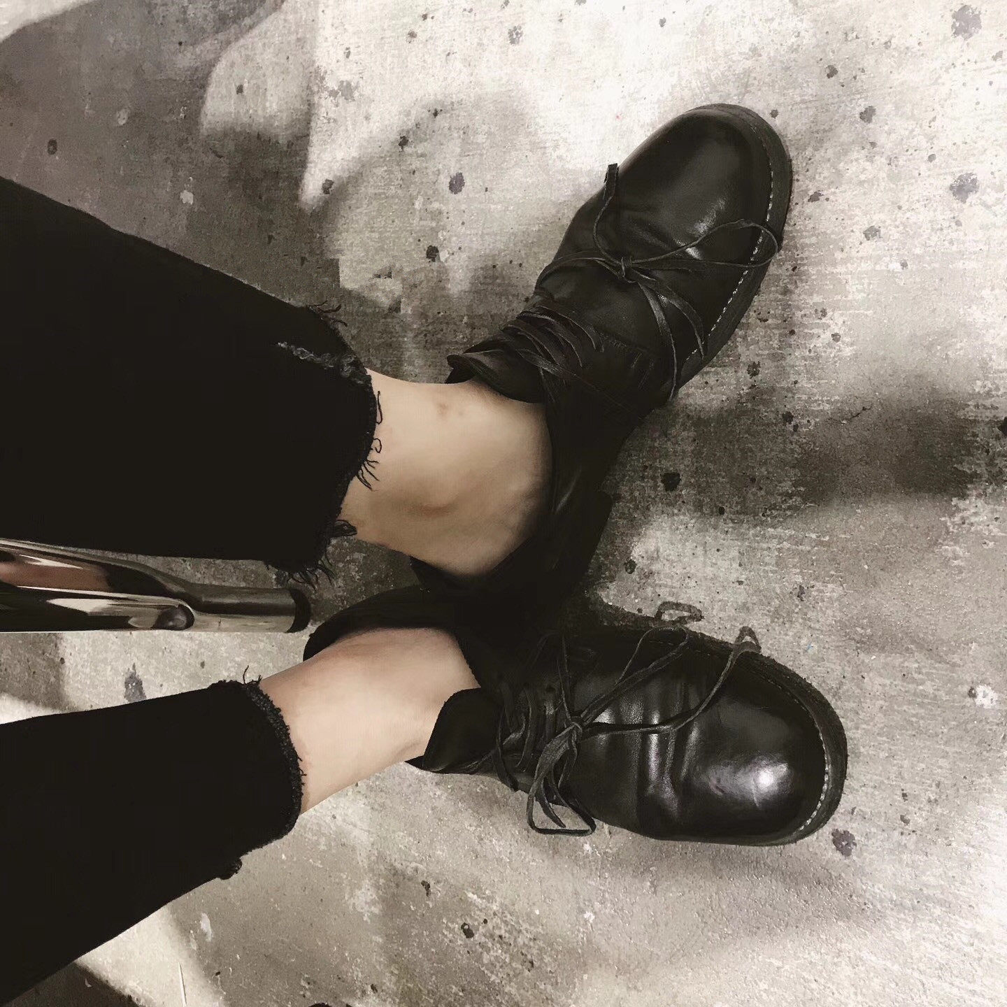 guidi (floating islands) handmade single shoes 992 dark black shoes lacing retro genuine leather strap casual leather shoes fairy shoes