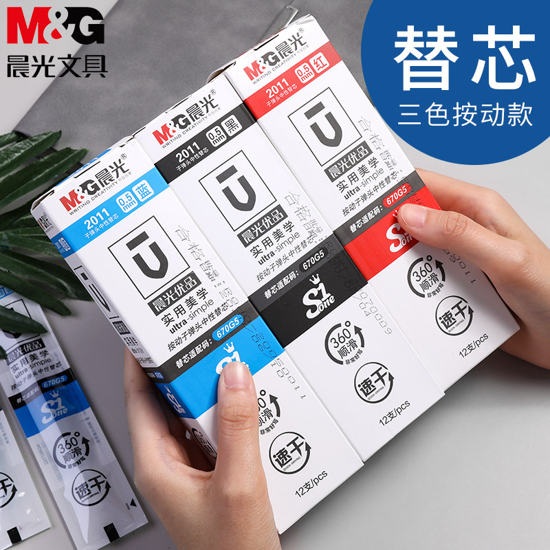 Morning light speed dry press refill 0 5 uber pint core 2011 water-based pen replacement core black 0 5 sub-warhead pressing type k35 middle sex pen mens student exam with quick dry curnan pen replacement core