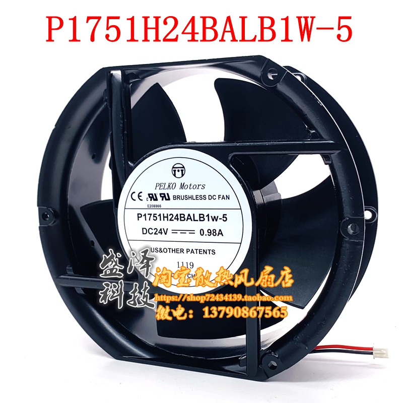 New PELKO 17251 P1751H24BALB1W-5 2-wire DC fan 24V 0 98A