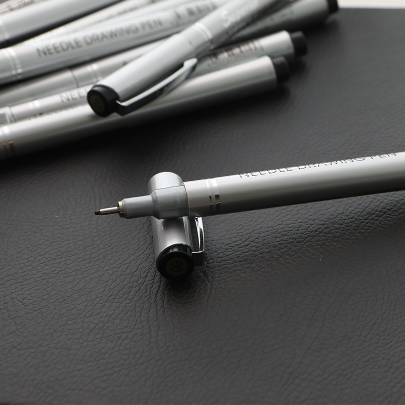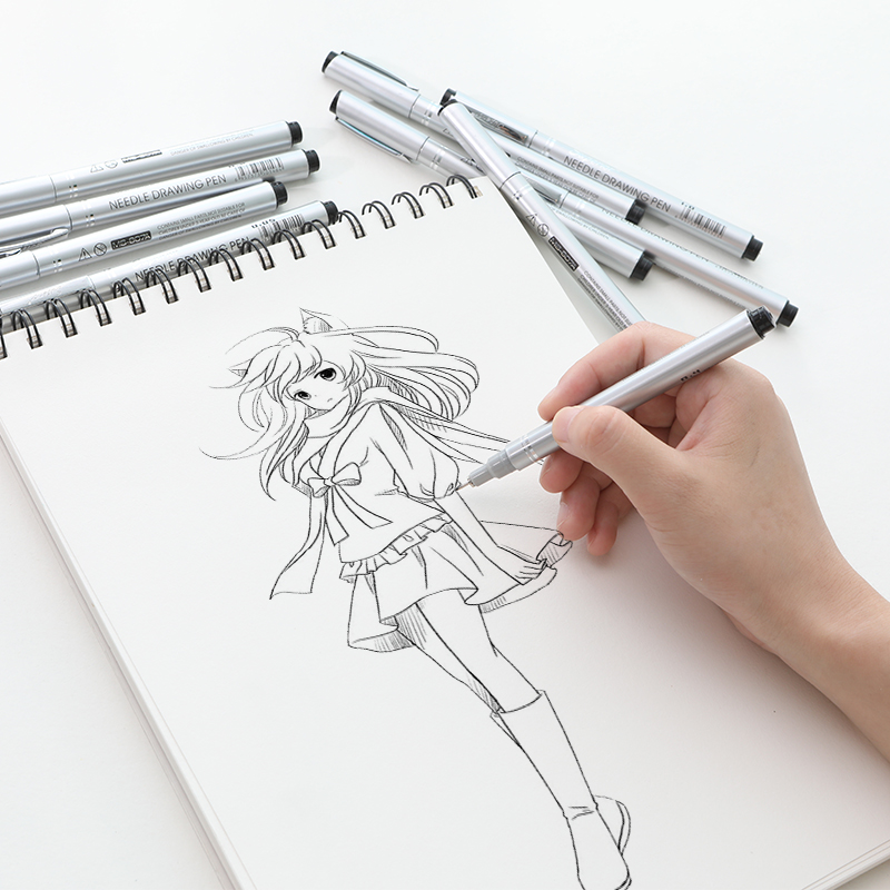 2 shows Waterproof Syringes Pen 0 05mm Ultrafine Refill Professional Students With Sketching Pen Exam Hand-painted Cartoon Hook Thread Pen Cap Dress Fine Art Sketching Pen Black Full Set