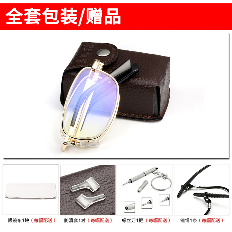 Folding old flower glasses men's portable anti-blue light high-definition glass old flower glasses female fashion ultra light comfort and elegance