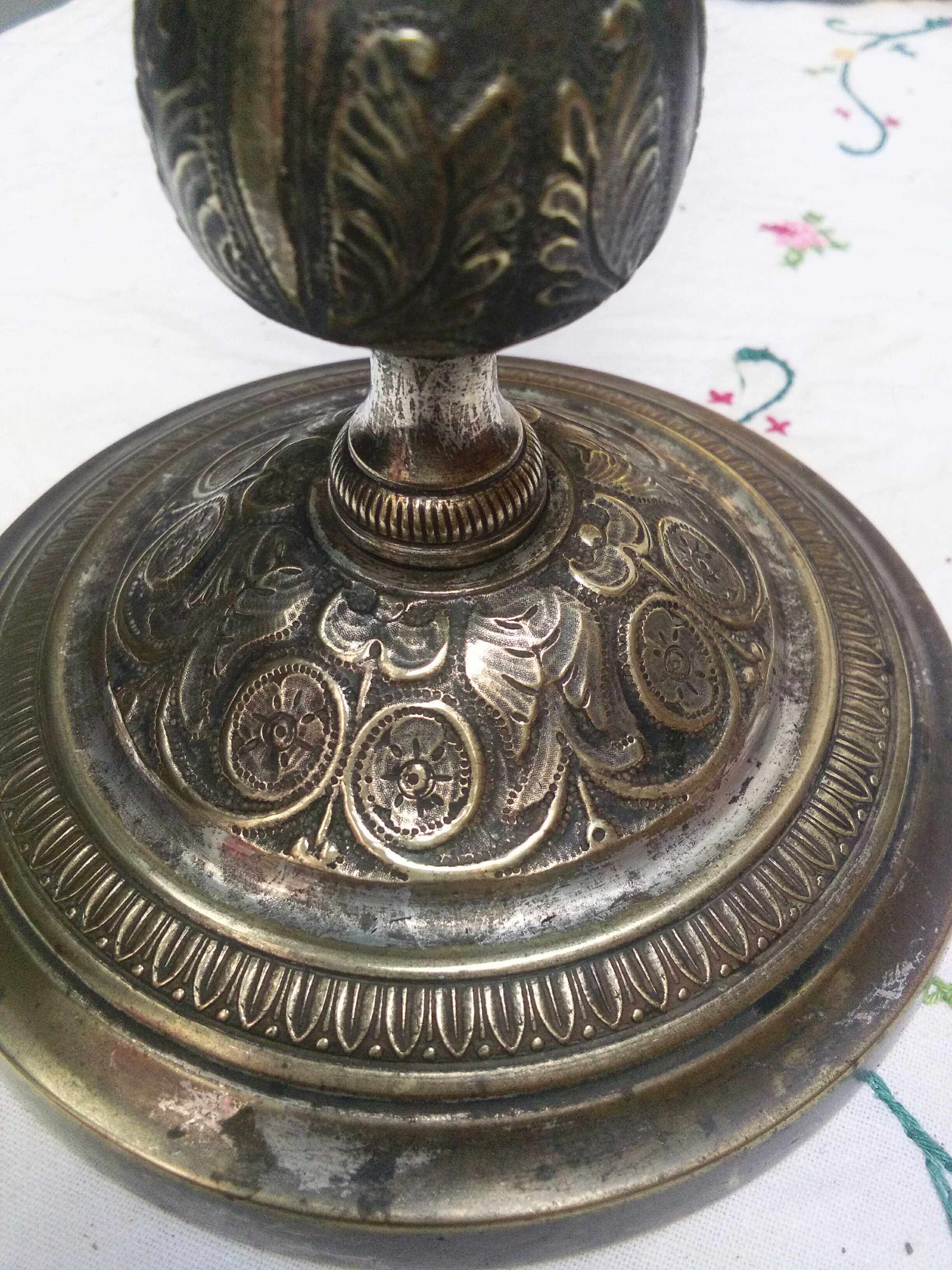 French 19th century Napoleonic Empire copper and silver plated candle holder hand-knocked