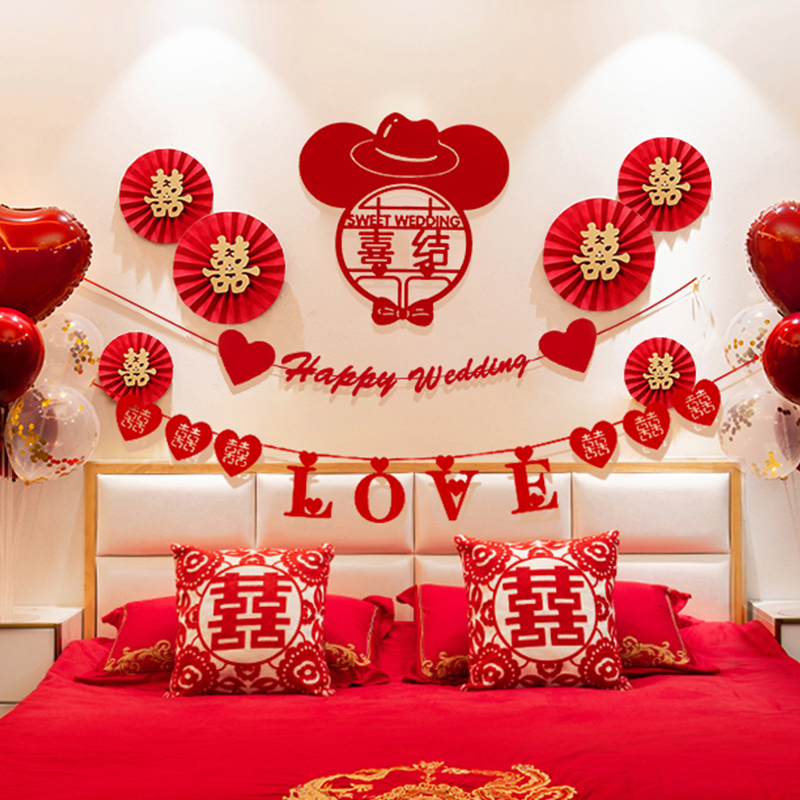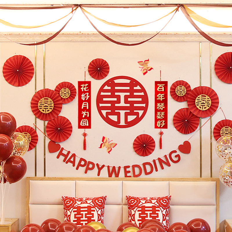 A hundred years good alloy fan flower wedding room decoration set 100 years good wedding room decoration set new (Chinese style) Net red wedding room set new (Chinese style) light luxury wedding room set wedding room decoration set (Chinese style)