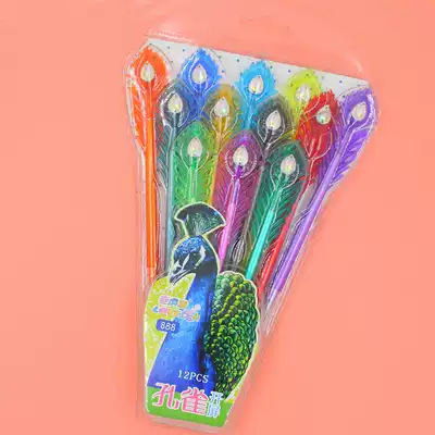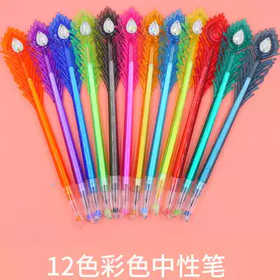 12 Color Diamond Stone student gel pen cute feather peacock color gel pen water pen