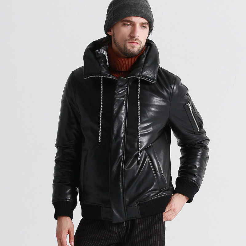French leather down jacket men's thickened short hooded jacket winter warm leather jacket men's sheepskin jacket