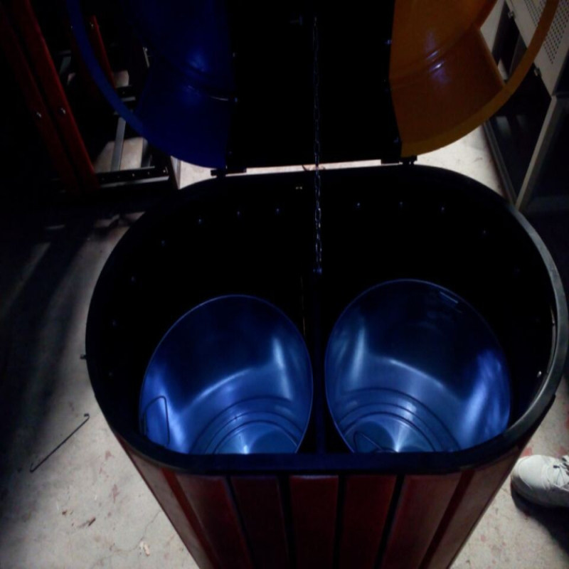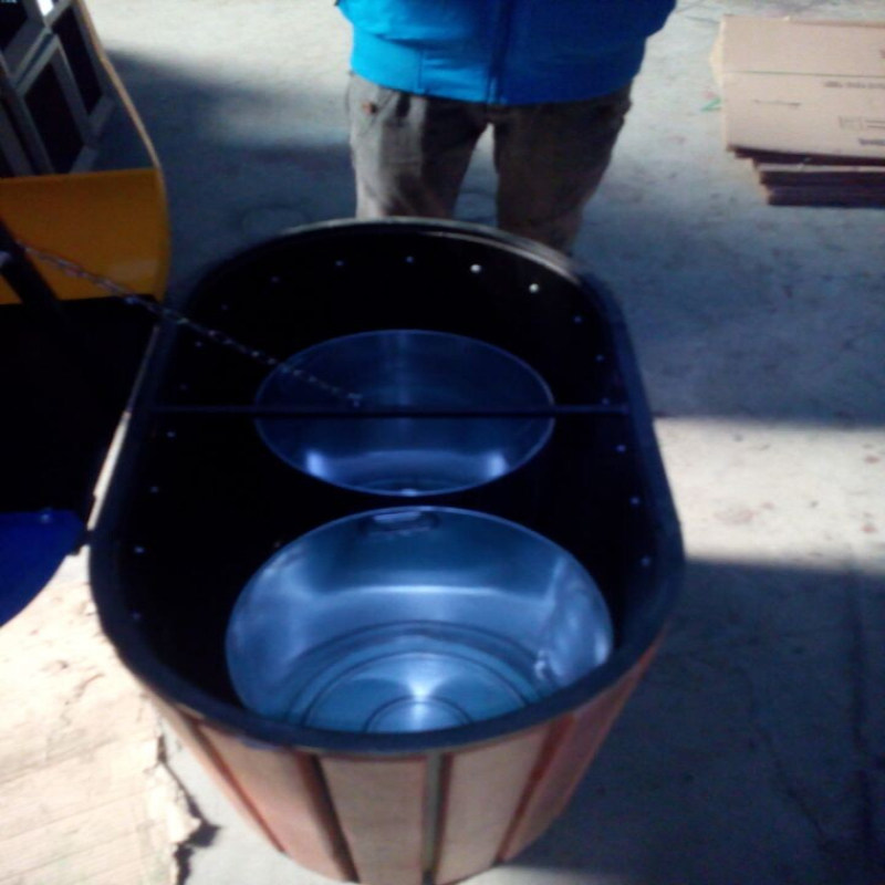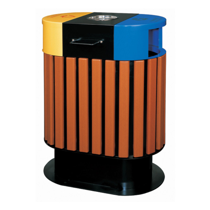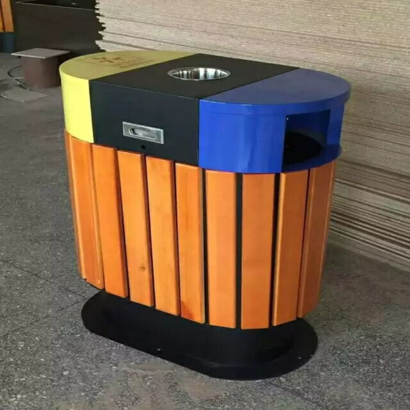 Outdoor Steel Wood Sorting Bins Tourist Area Park Community Twin-Barrel Fruit Leather Case Wood Strip Sanitation Smoke Flush Dustbin
