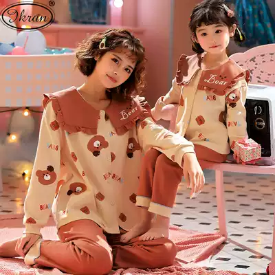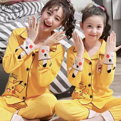 Children's pajamas girls Spring and Autumn long sleeves cotton cartoon girls Middle and big children mother and daughter parent-child clothing home clothing set