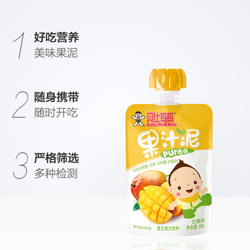 Wangwang Bebe Mama fruit puree suction bag children's snack fruit puree 90g mango flavor juice puree