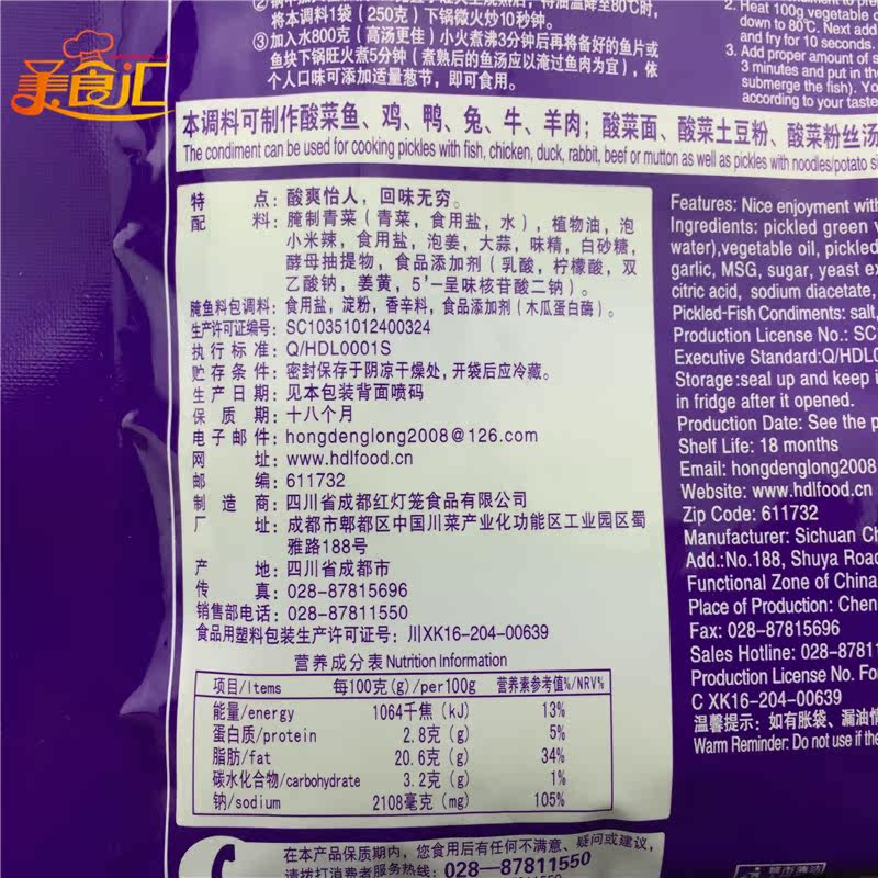 Sichuan red lantern Laotan sour vegetable seasoning 260g sour vegetable fish pickled fish stock boiled fish sauerkraut bottom stock