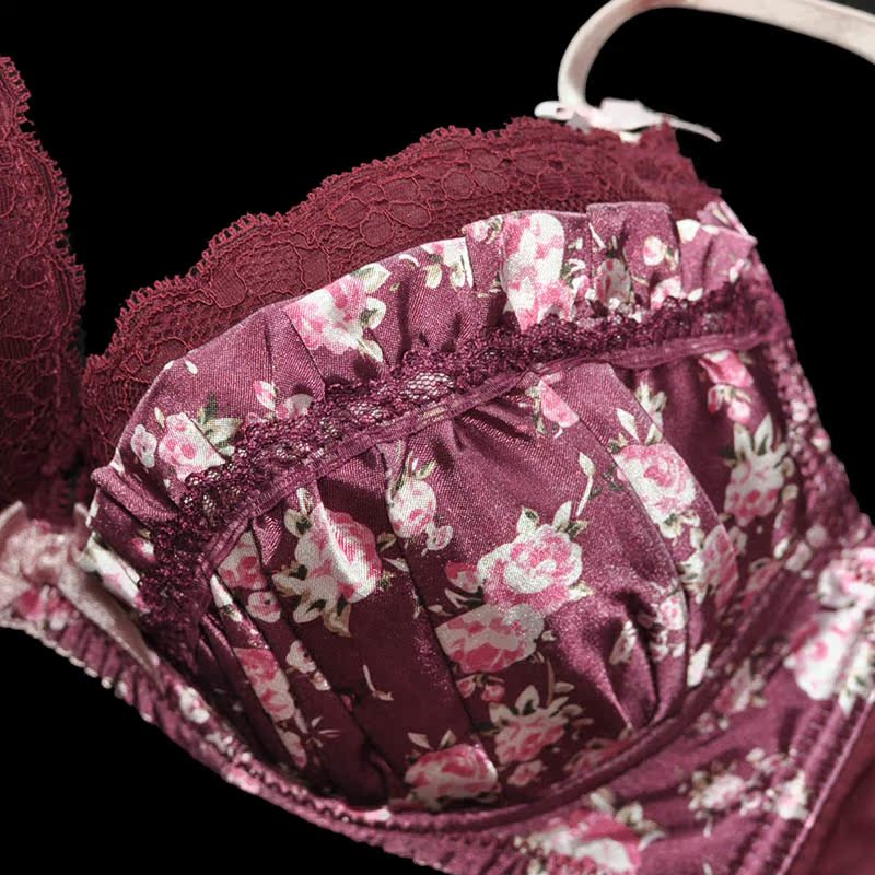 Clearance Japanese thin floral cute girl gathered small chest on the trust women's bra 65C 70BCD 75D