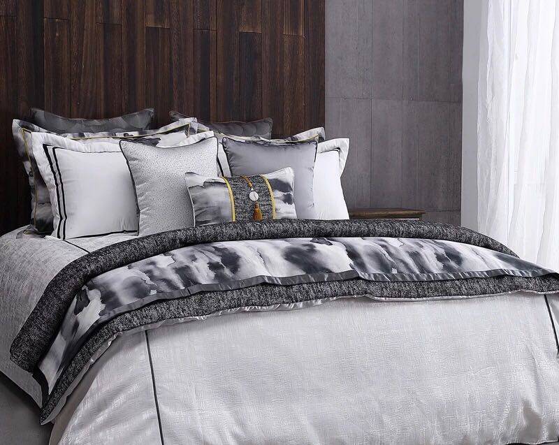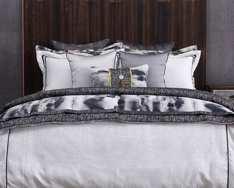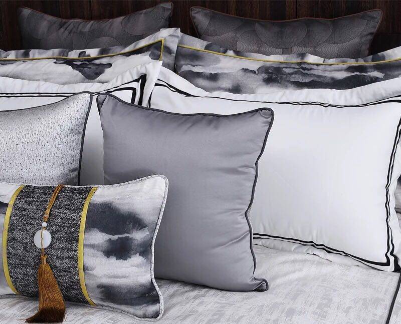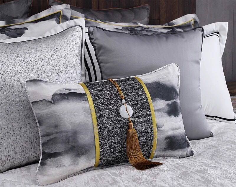 Modern new Chinese-style model room bed pillow black gray landscape abstract pattern 12-piece bedding set