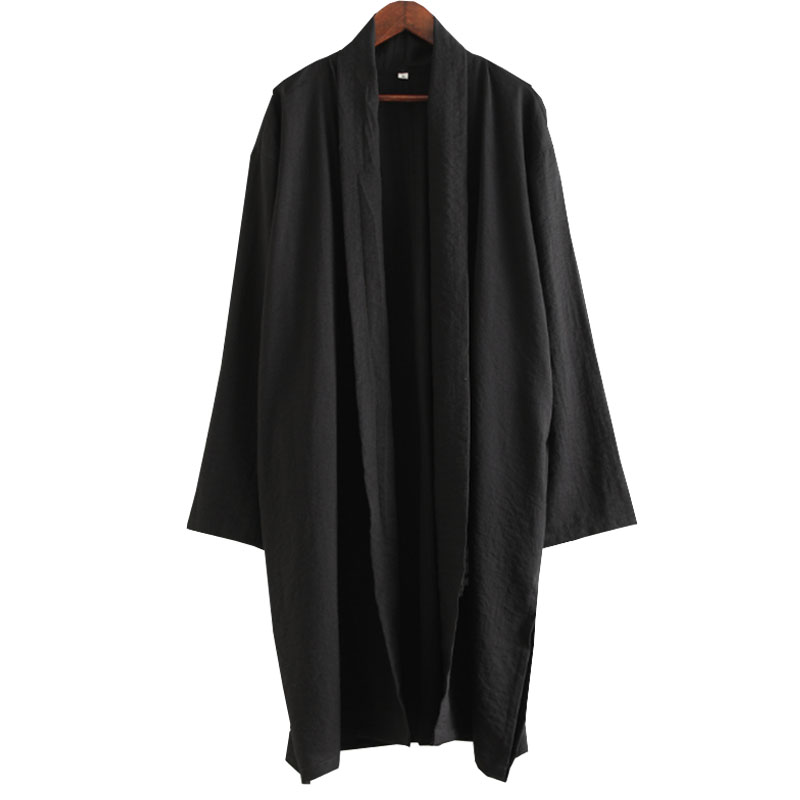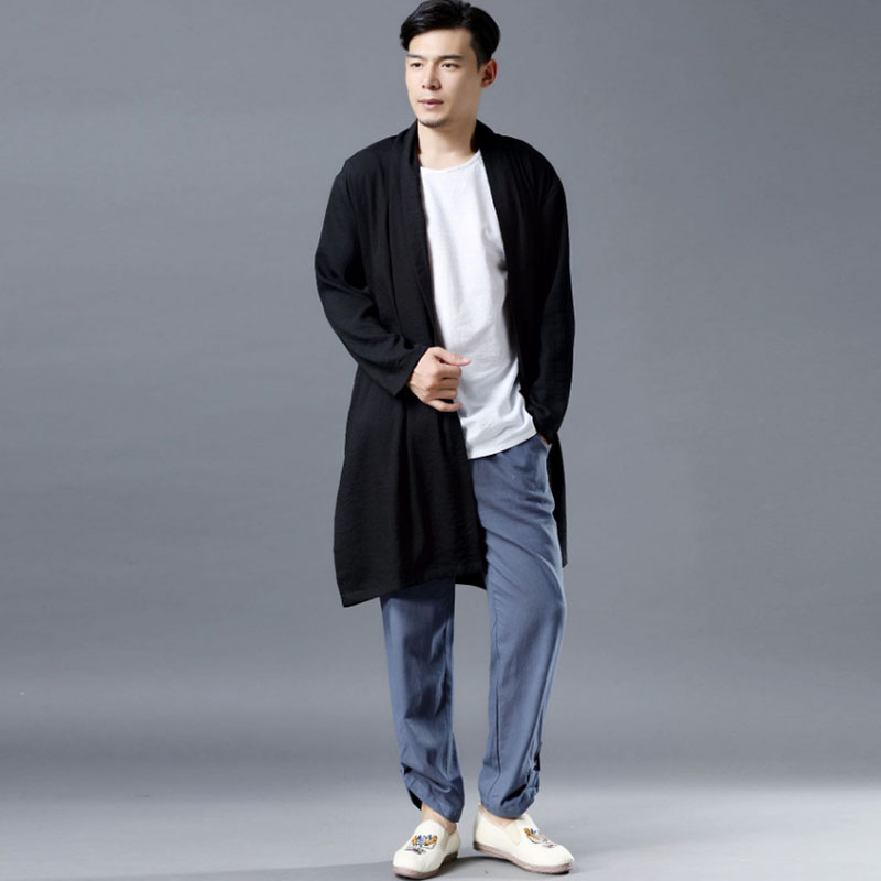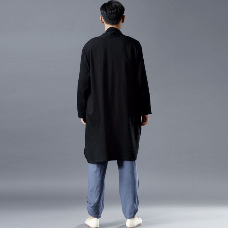 Chinese Hanfu Male Chinese National Cloak Retro Medium and Long Embroidered Trench Coat Cotton and Hemp Zen Lay Jacket