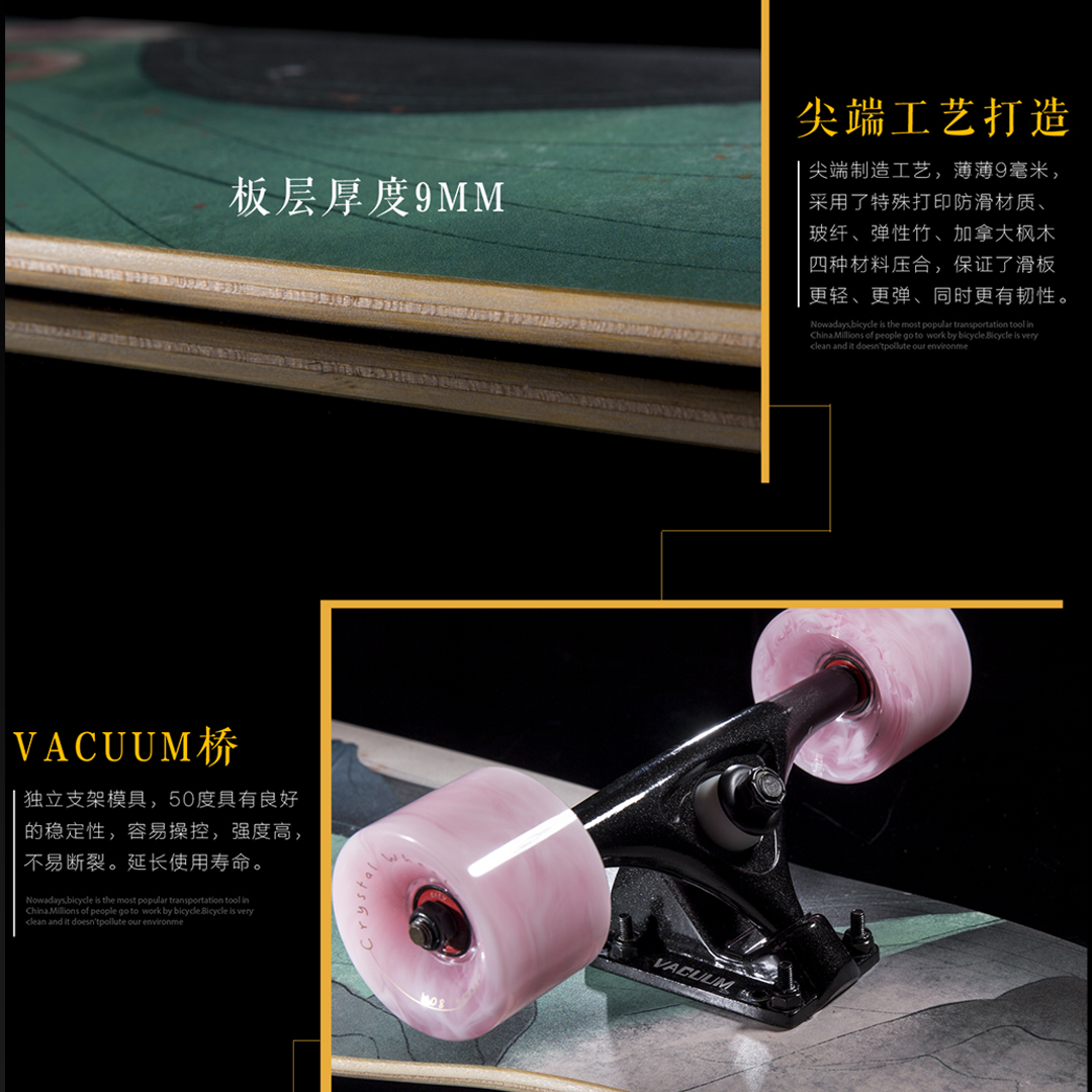 Anti-mountain longboard skateboard White fox dance board Professional board Meow board Novice children adult version male and female students Beginner limit