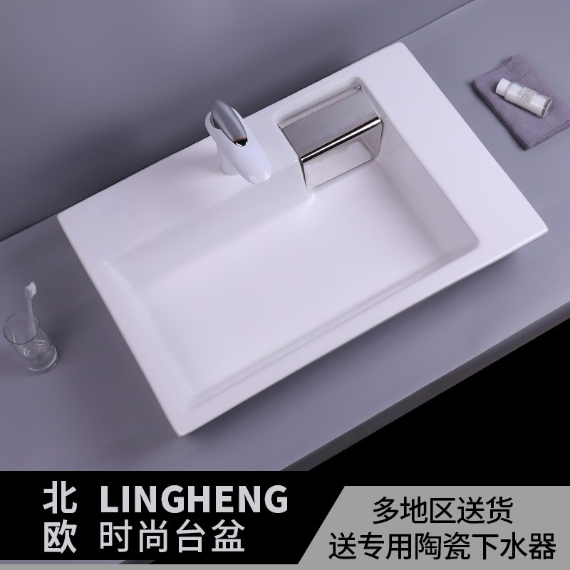 Personalized countertop basin side water ceramic square washbasin art basin back drain wash basin laundry basin