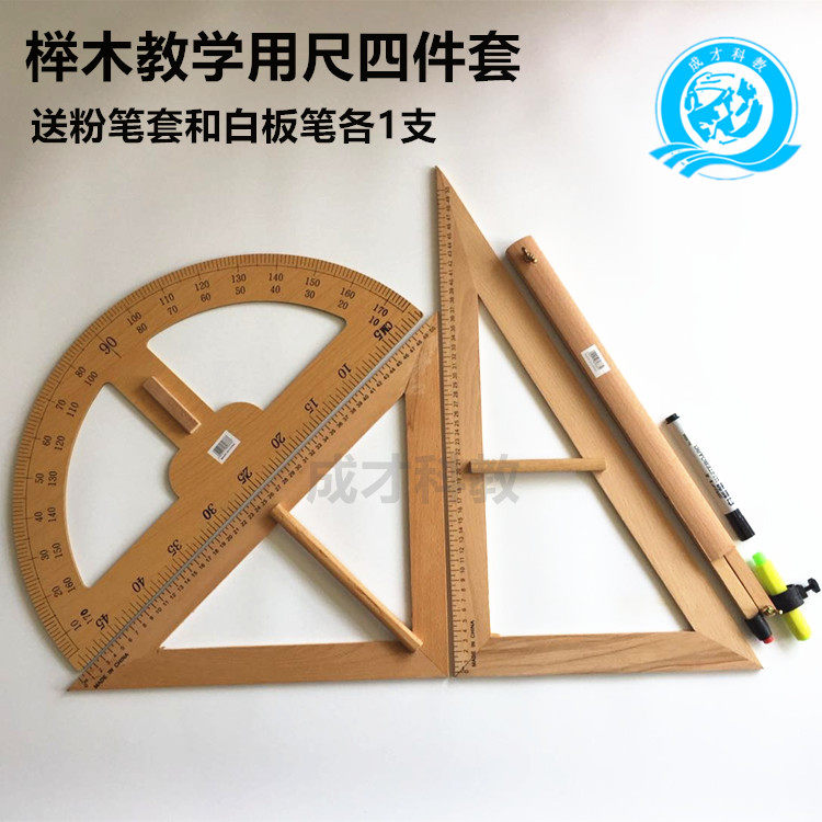 Beech wood triangular ruler four pieces-rubber head compasses beech wood triangular ruler four pieces-nail head compasses beech wood triangular ruler four pieces-sucker-head compasses