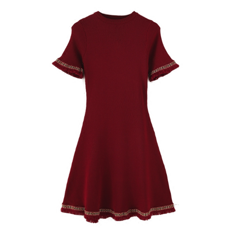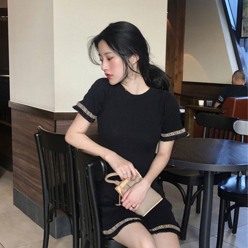 Hong Kong 2021 Summer new Korean version of women's clothing Small fragrance Knitted Foreign Dress Short Sleeve Body a Character Dresses