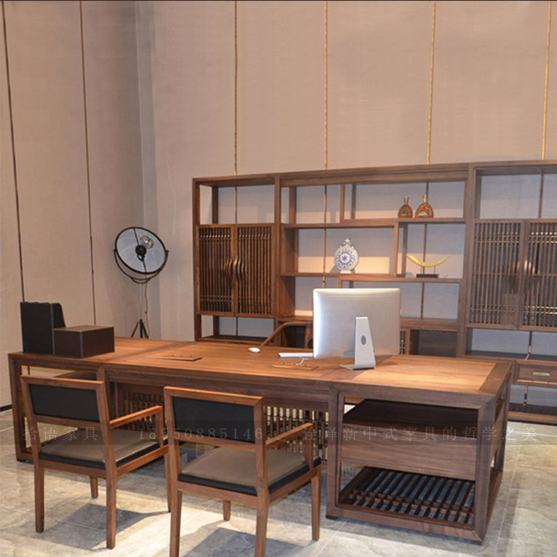 New Chinese Style Boss Office Desk and Chair Combination Black Walnut Solid Wood Zen President Supervisor Office Desk Manager Office Furniture - Taobao