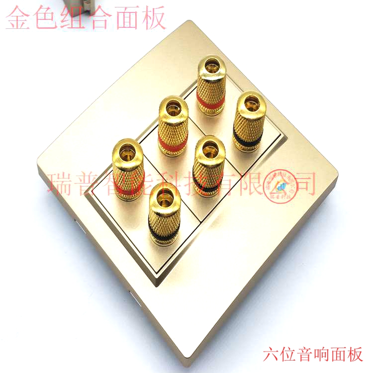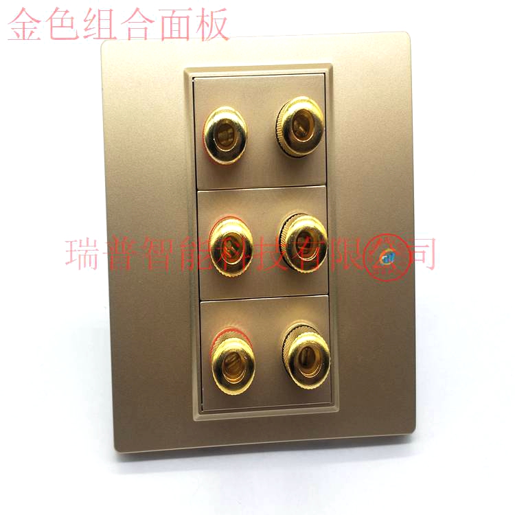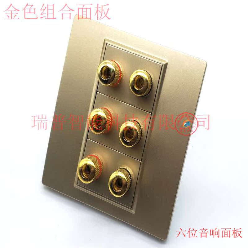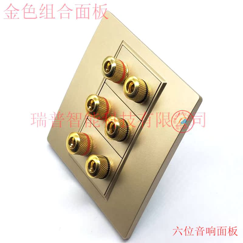 Champagne Gold 86 Type Three Sound Socket Golden Six Heads 6 Holes Speaker Line 5 1 Surround Audio Panel