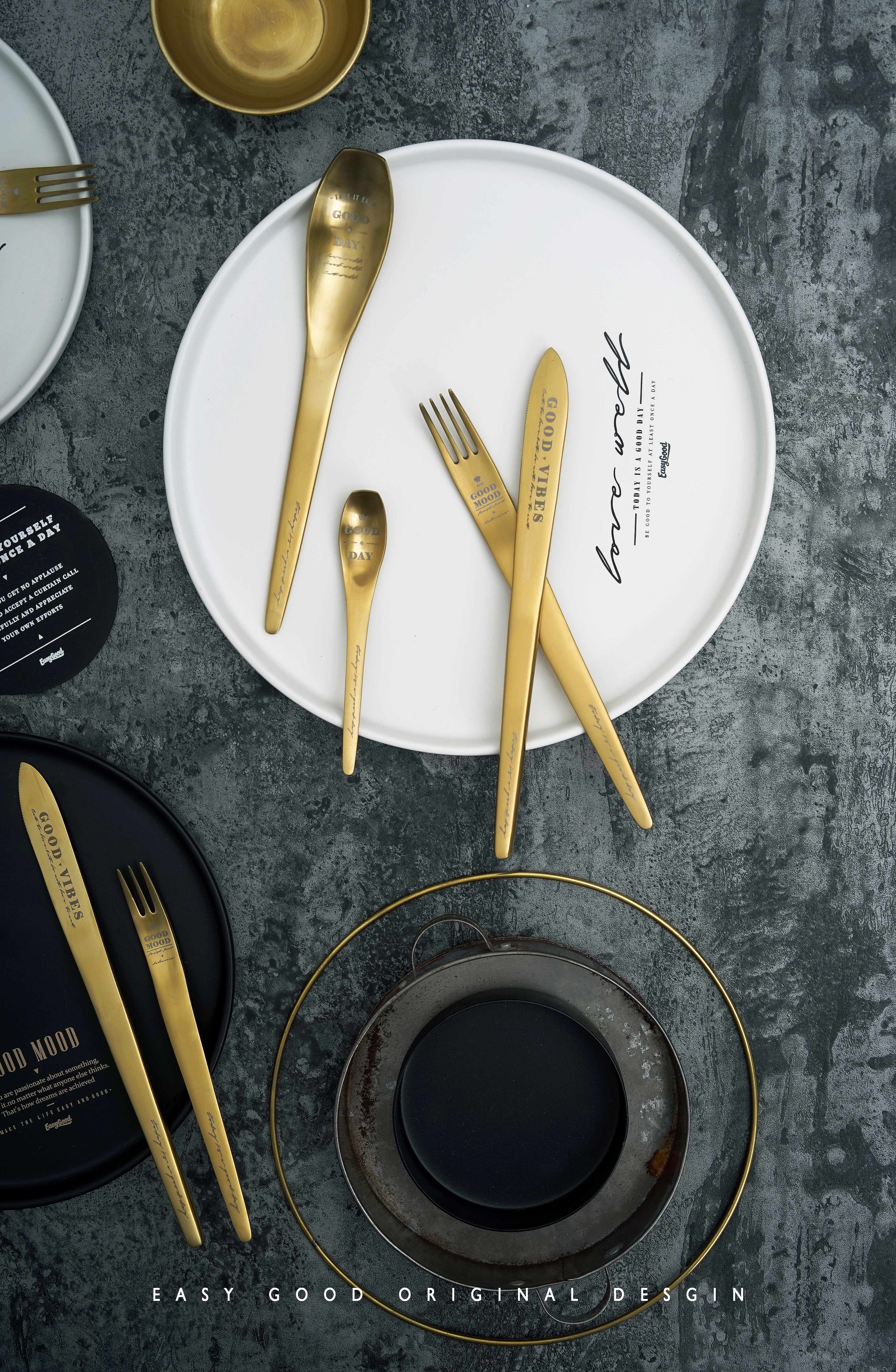 Golden main dining spoon golden main dining knife golden main dining fork gold sweet pitchfork gold coffee spoon black main dining knife black main dining fork black sweet pitchfork black coffee spoon golden main dining knife fork spoon three sets