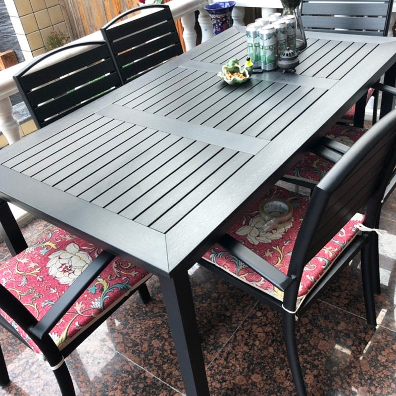 Outdoor Table And Chairs Patio Garden Anticorrosive Wood Table And Chairs Outdoor Open-air Balcony Tea Table And Chairs Terrace Casual Plastic Wood Table And Chairs