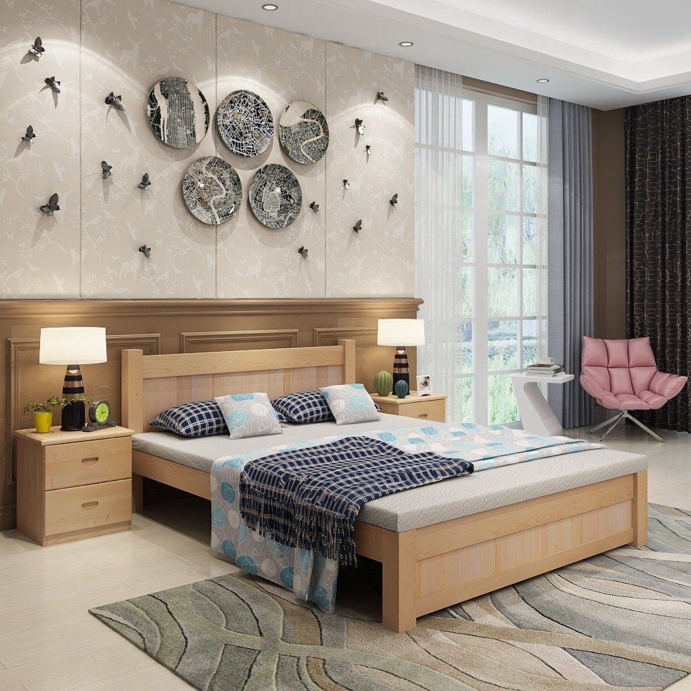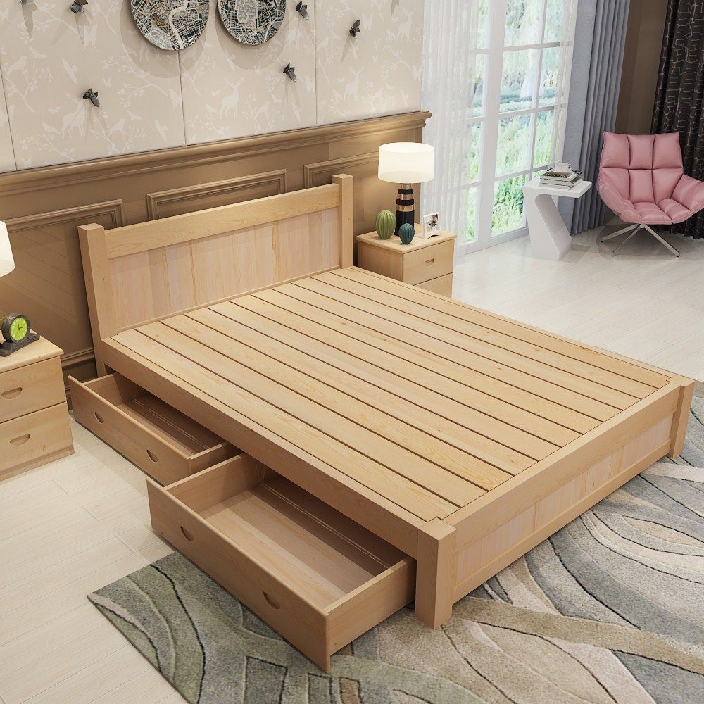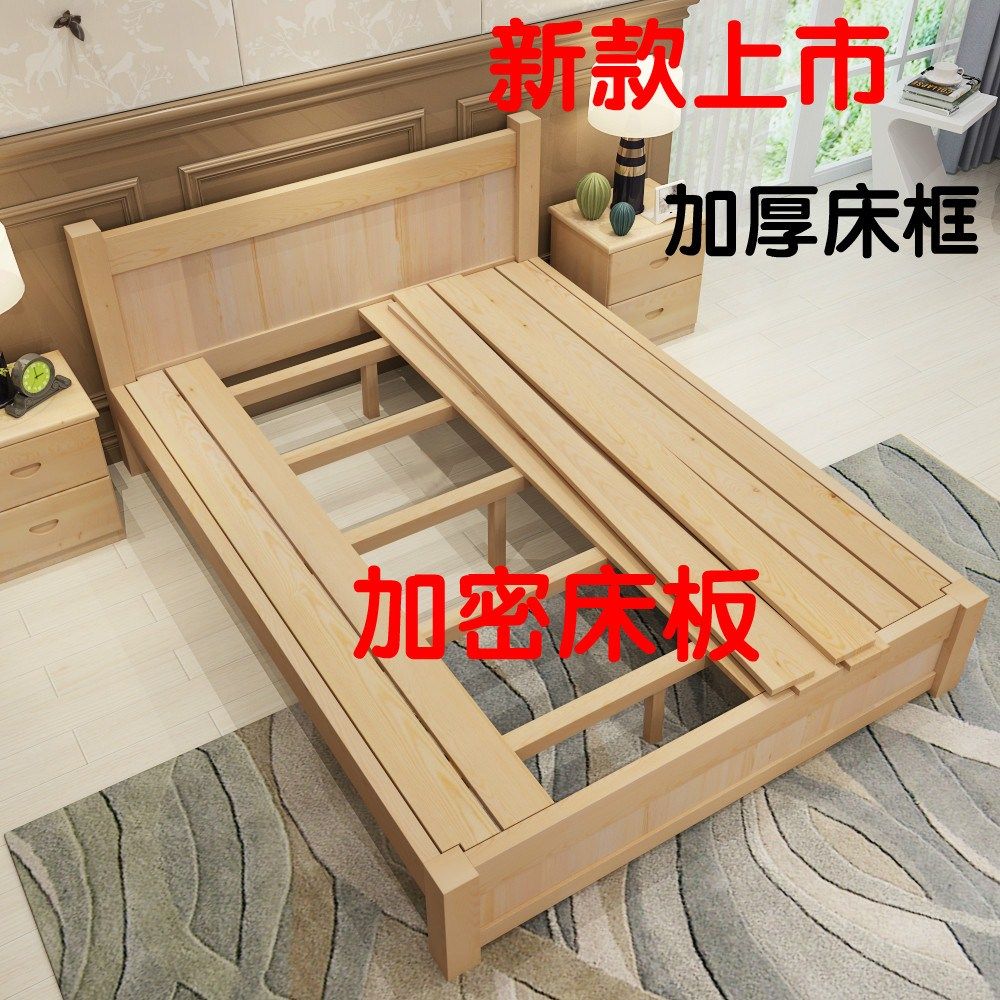 Economy-type solid wood bed Double beds 1 5 1 8 m Single beds 1 2 Modern minimalist Pine Wood Furniture