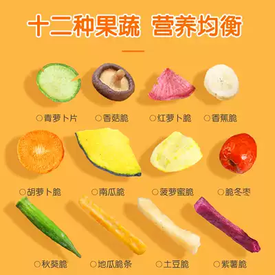 Purple potato potato chips Lotus root crispy carrot Okra Green Radish yellow peach Shiitake mushroom Jackfruit Banana slices Pumpkin crispy taro strips Palm oil Malt syrup Salt seasoning (Edible salt Vegetable oil White vinegar(white vinegar malt vinegar essence