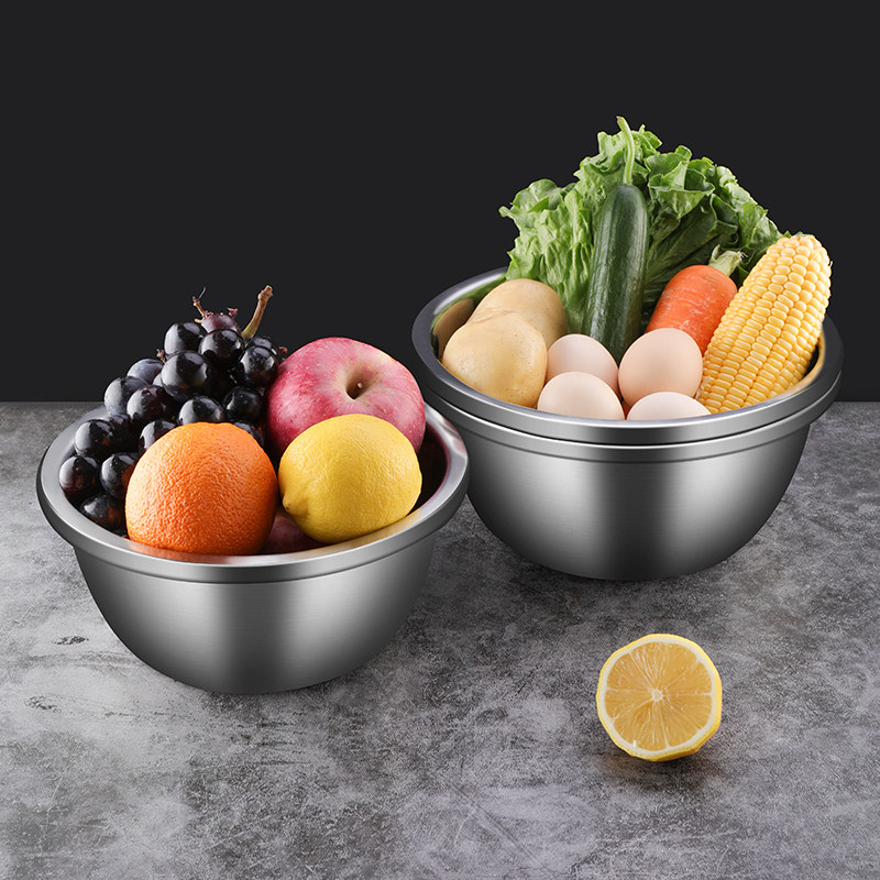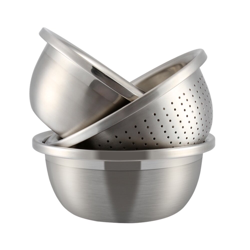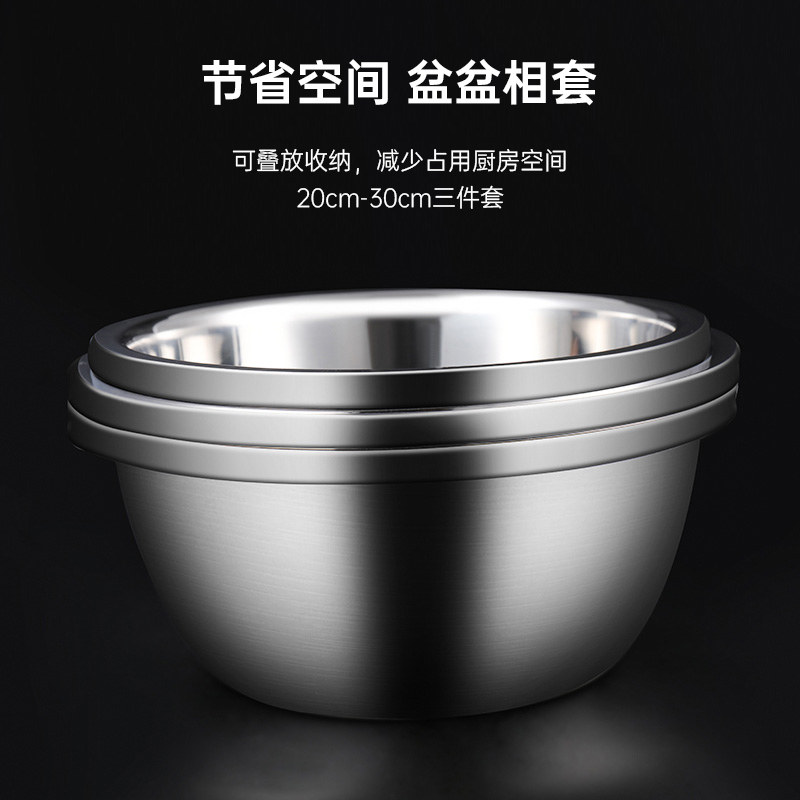 Bethers 304 stainless steel basin Food grade kitchen household and egg beating basin thickened 3-piece set vegetable washing drain basin