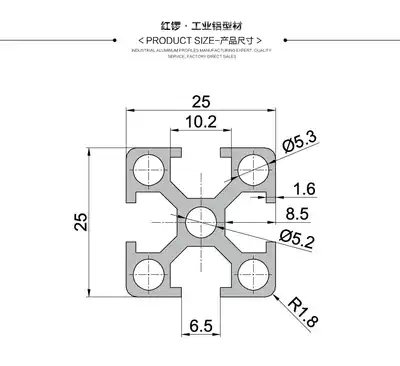 Red Gong 2525 Aluminum Extrusion Material Industrial Aluminum Extrusion Material Line Profile Aluminum Alloy Profile Frame Sub-National Standard Slot 6