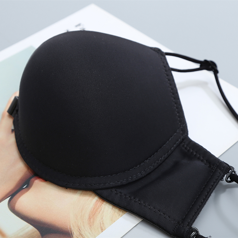 Front buckle beauty back underwear girl black halter incognito cross thin shoulder strap bra thickened gathered small bra thin section
