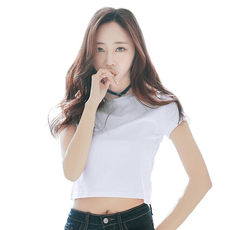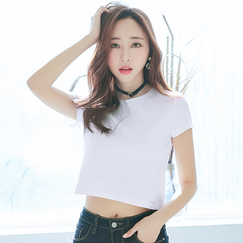 High waist top female short short white cotton T-shirt female short sleeve slim design feeling show navel T-shirt summer