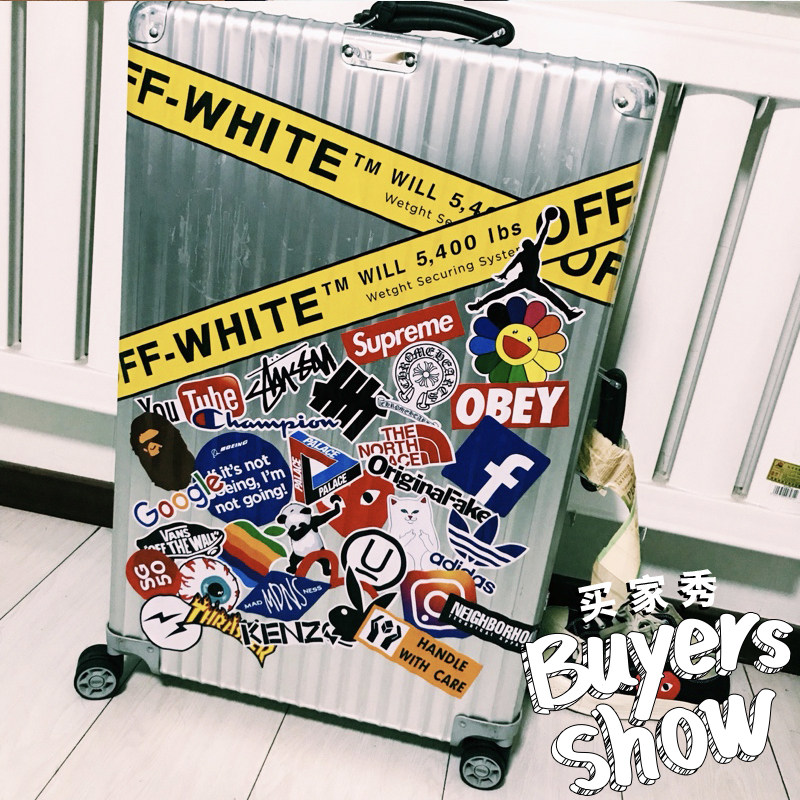 (Large Zhang) 2 super large off white personality tide luggage sticker travel box wall waterproof glass