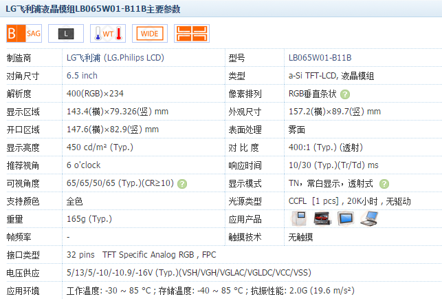 Original fit LG6 5-inch LB065W01 (B1) (1B) (1B)