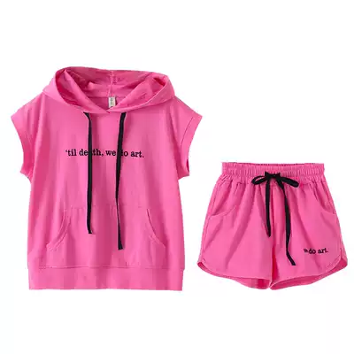 Girls sports set 2021 new summer dress big children women's short-sleeved shorts hooded two-piece mother and daughter parent-child