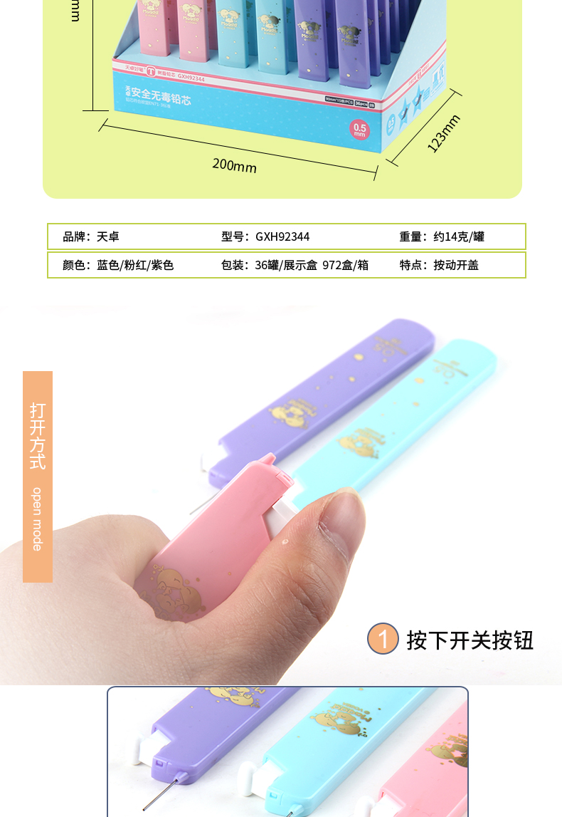 Tianzhuo mechanical pencil core 0 7 0 5 lead core student lead core 2B lead core resin lead core automatic pen pencil for core