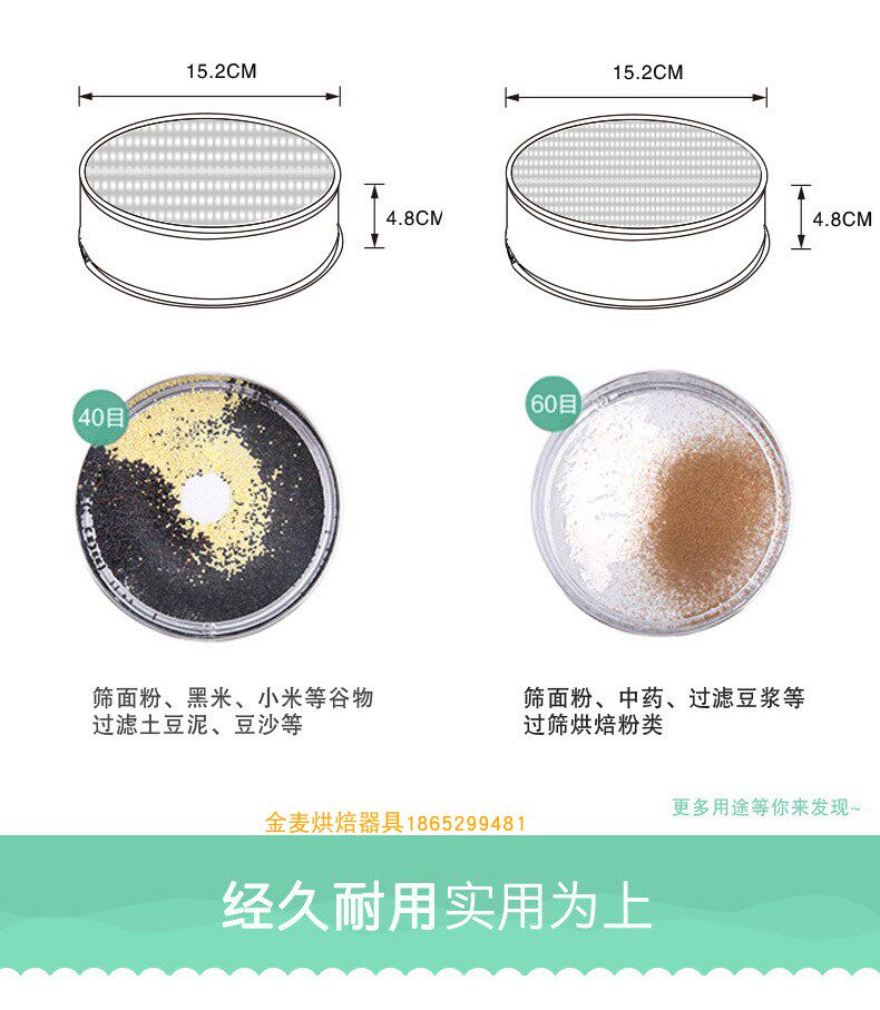 (A160) 40 mesh diameter 15CM boxed (A161) 60 mesh diameter 15CM boxed (A162) 40 mesh diameter 15CMOPP bagged (A163)
