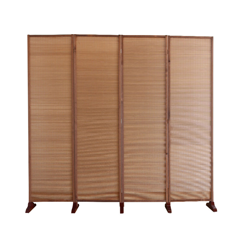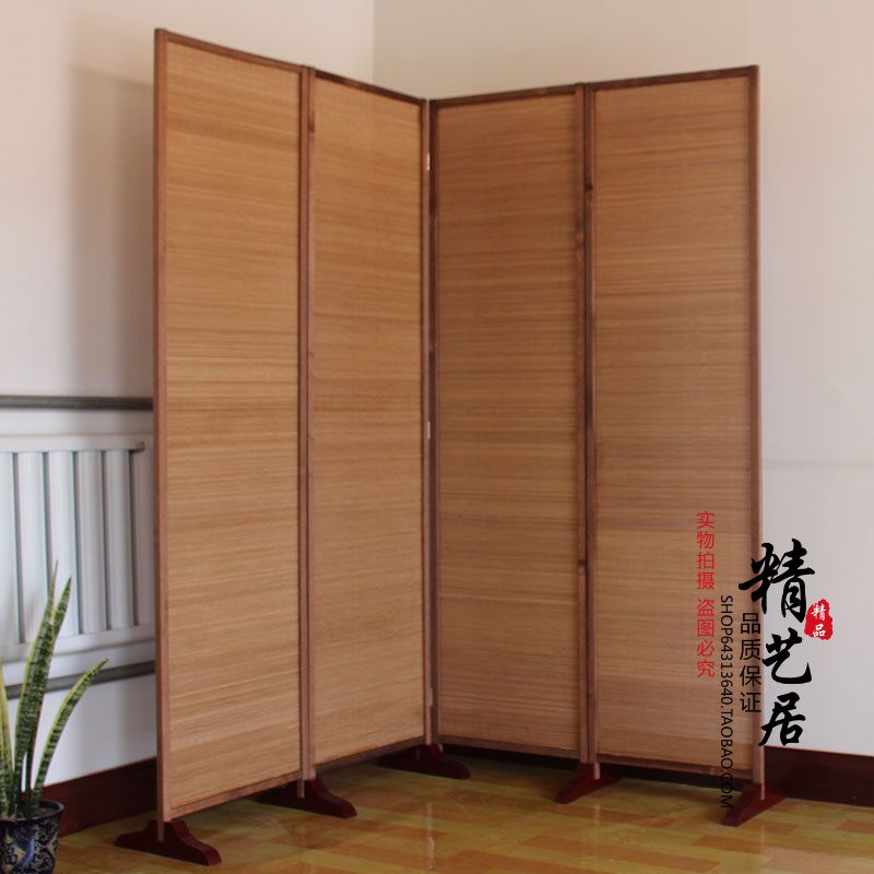 Silk and bamboo screen partition living room modern minimalist folding screen folding mobile bedroom fashion Chinese style solid wood porch screen